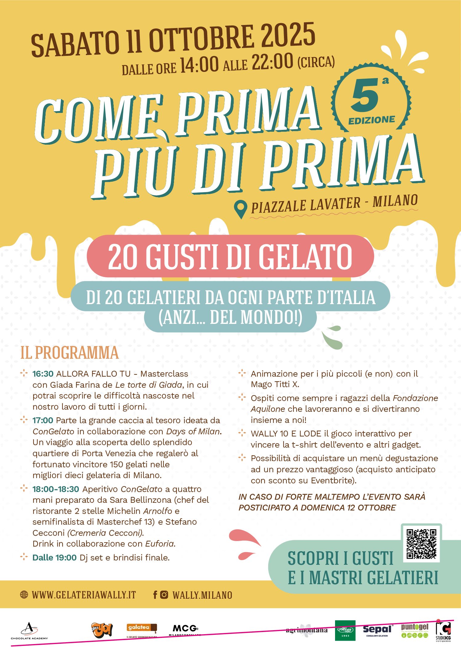 Così 20 gelatieri selezionati da ogni parte d’Italia si ritroveranno da Wally ed ognuno di loro porterà un gusto di gelato studiato ad hoc per la giornata.