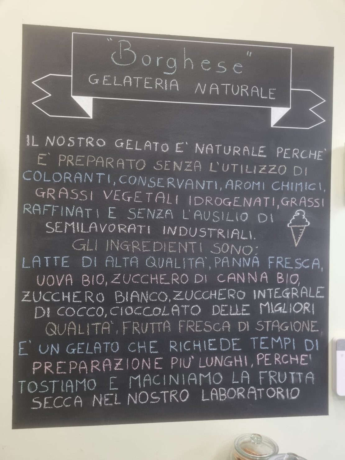 Il nostro gelato è naturale perché è preparato senza l’utilizzo di coloranti, conservanti, aromi chimici, grassi vegetali, grassi idrogenati e senza l’ausilio di semilavorati industriali. Gli ingredienti sono latte di alta qualità, panna fresca, uova bio, frutta fresca di stagione. Tostiamo e maciniamo tutta la frutta fresca nel nostro laboratorio. Da tutto ciò ne nasce il nostro gelato naturale! August 10, 2025 Il quartiere di Testaccio è una perla nascosta di Roma e la gelateria Borghese è il fiore all'occhiello🤩 I gusti di gelato sono unici e ognuno è pieno di sapore e amore💕 Una delle cose migliori è Giuliana, la proprietaria che investe il suo cuore e la sua competenza in questa attività. Provatela!