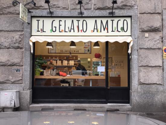Dovrebbero esserci più gelaterie così!!! ❤️ Grazie!!! ❤️ September 30, 2023 Ottimo gelato da passeggio da asporto e consumazione sul posto. La gelateria è fornita di prodotti ottimi per i vegani, celiaci e non. Mi sono meravigliata quando ho chiesto il gelato piccolo a 3,OO euro. Sinceramente non mi aspettavo una quantità superiore a quella abituata a ricevere nelle gelaterie della mia regione allo stesso prezzo. Ho gustato il gelato ai fichi che ho trovato molto delicato e fresco. Gentile e veloce la gelataia. Pagamenti in contanti con carte e app. Non lasciatevi sfuggire l'occasione di gustare il gelato da Gelato Amico a Torino. August 8, 2024 Ho conosciuto questa gelateria per caso su Instagram.